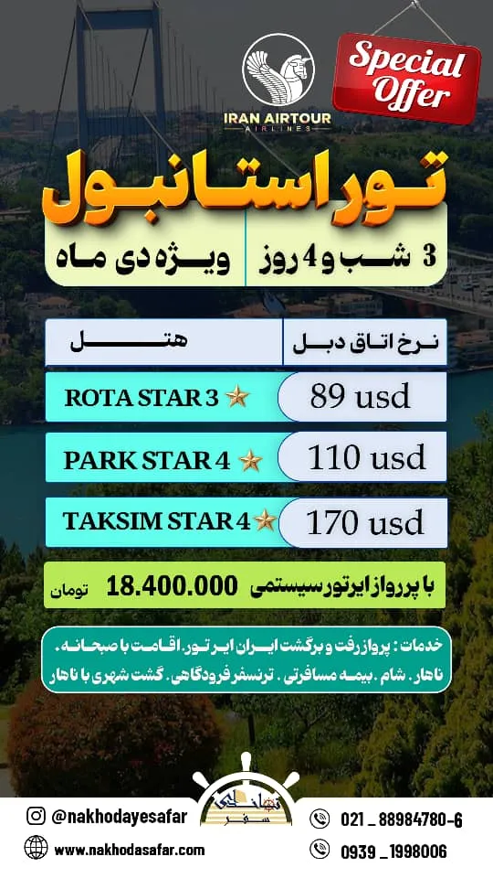 تور 4 روزه استانبول از تهران با ایران ایرتور4-day Istanbul tour from Tehran with Iran Airtour