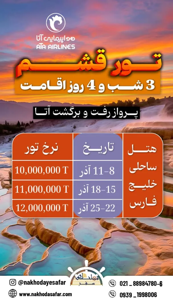 تور ارزان قشم از تهران هواییCheap Qeshm tour from Tehran by air