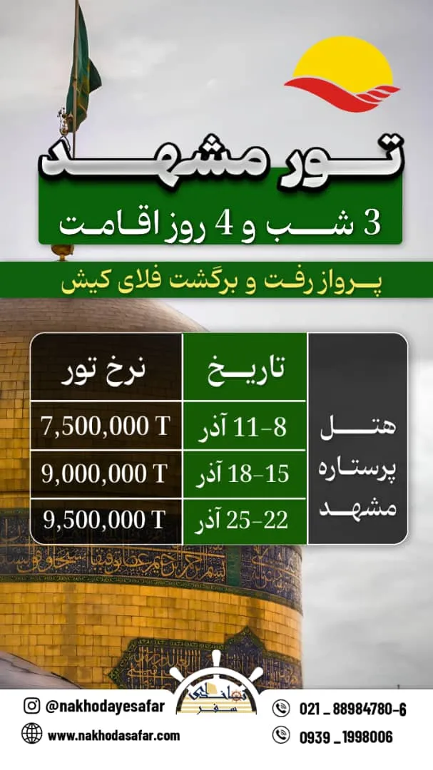 تور هوایی مشهد هتل پرستاره مشهدMashhad Air Tour Mashhad Porsetareh Hotel