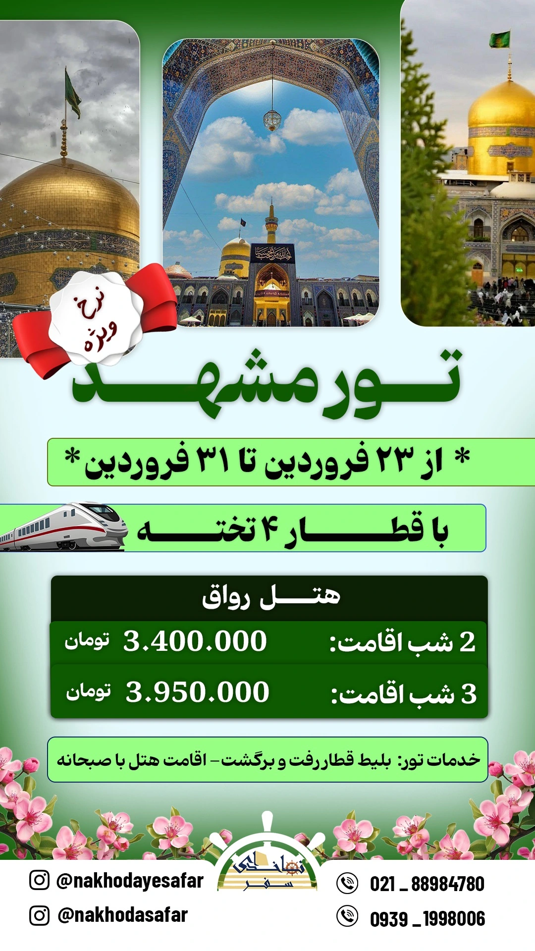 خدمات تور: - بلیط رفت و برگشت قطار ۶ تخته / ۴ تخته