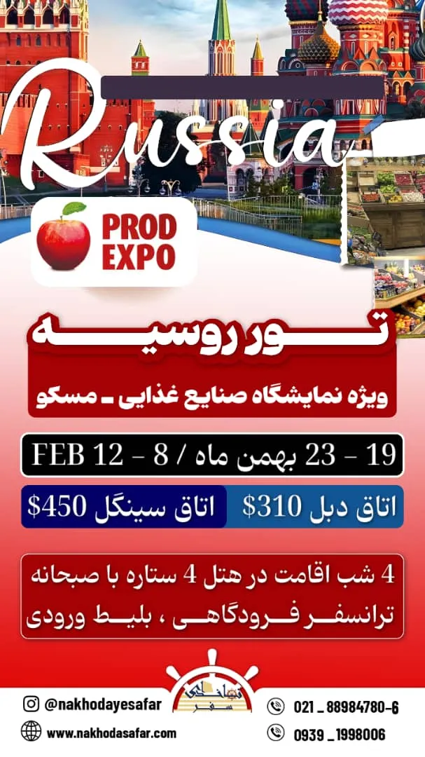 تور نمایشگاه صنایع غذایی روسیه (ProdExpo)Tour of the Russian Food Industry Exhibition (ProdExpo)